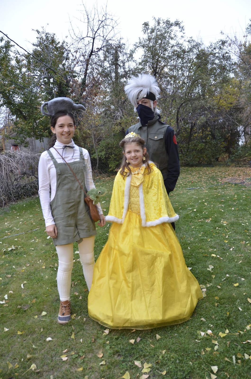 Emma had originally wanted to be a deer, but when our friend Emily found a great Belle dress for sale we took her up on it. Emma had mentioned Belle in the past and it wasn't too hard to talk her in to putting the deer costume off for a year. We had fun watching youtube videos to learn how to do her hair and going to the Disney store to add details to her costume like fun Belle shoes and earrings. I couldn't say no to that girl.